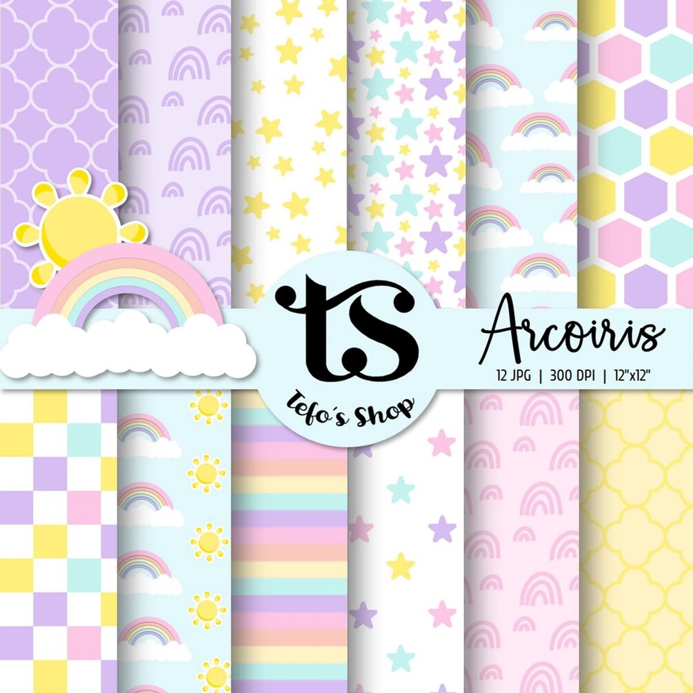12 Diseños de Papeles digitales | Alta calidad (12" x 12") + Cliparts